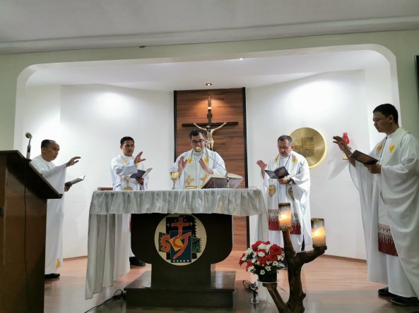 The celebration started at 4:00 PM with the solemn procession and was followed by the Holy Eucharist presided by Most Reverend Bishop Emeritus Antonio R. Tobias, DD, at 6:00 PM, and community diner at 7:30 in the evening. Prior to this event the community held a special novena that was held on 9 consecutive Sundays at 10:00 in the morning. The celebration was attended by the members of the Dehon House community and the Regional Superior, Fr. Lukas Hadi Siswo Sasmito, SCJ.