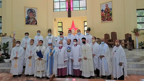 On May 15, 2021, the parish community of San Isidro Labrador in Dumalinao celebrated its 64th Annual Feast of the Patron, and at the same time Dedication of the Church. The concelebrated Mass was presided by the bishop of Pagadian, Most. Rev. Ronald Lunas, D. D, who was joined by Fr. Joseph Muego, SCJ, the parish priest, Fr. Joel Bolo, SCJ, the assistant parish priest, deacon Reneboy Socorro, SCJ, and other SCJ and priests from the Pagadian Diocese.